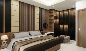 Ốp tường phòng khách – phòng ngủ: Tạo điểm nhấn tinh tế, sang trọng, giúp không gian bớt đơn điệu và có chiều sâu.